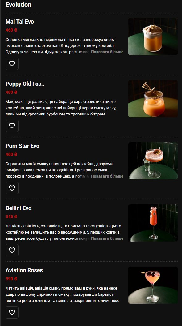 Коктейли — Меню
